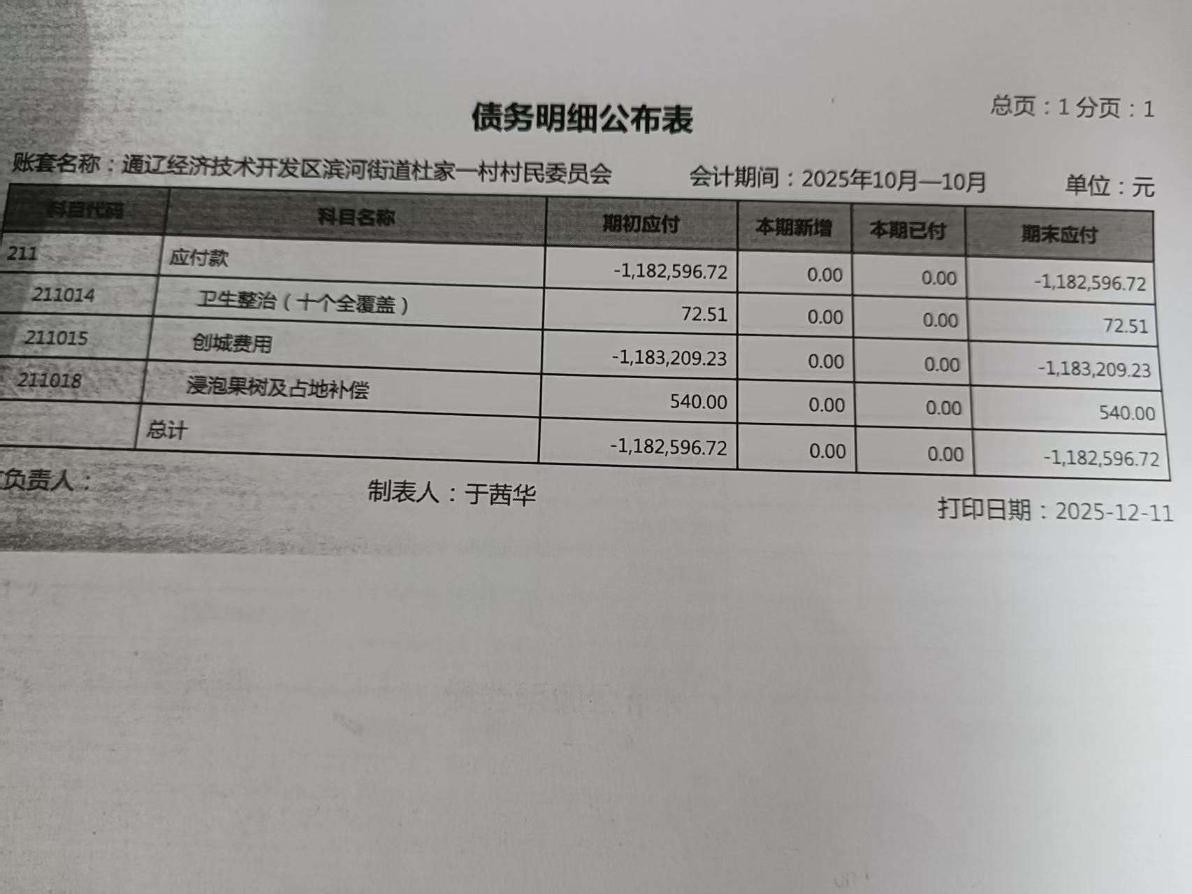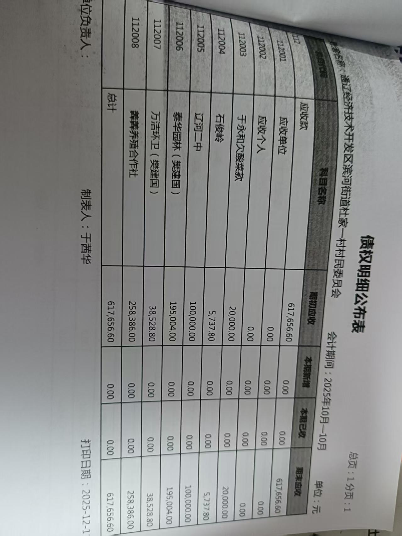 2025年10月债权债务
