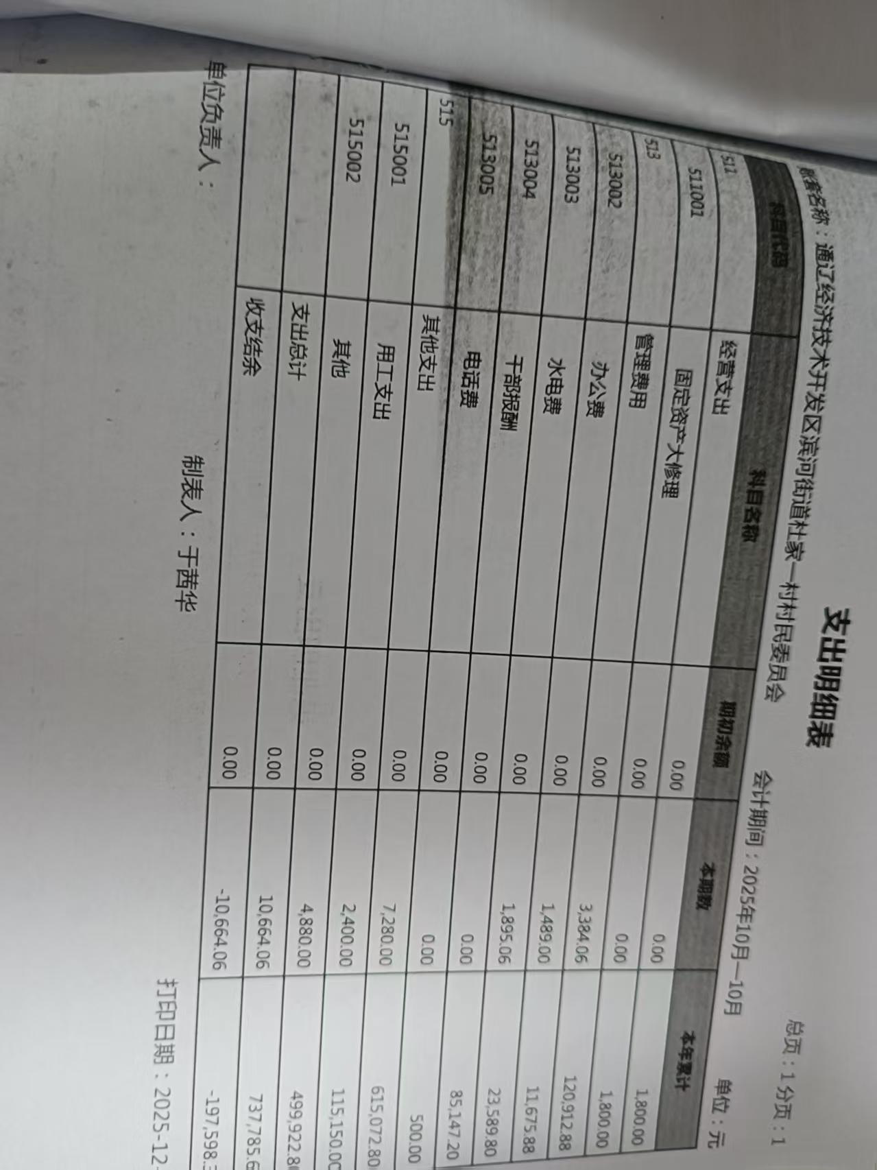 2025年10月收支