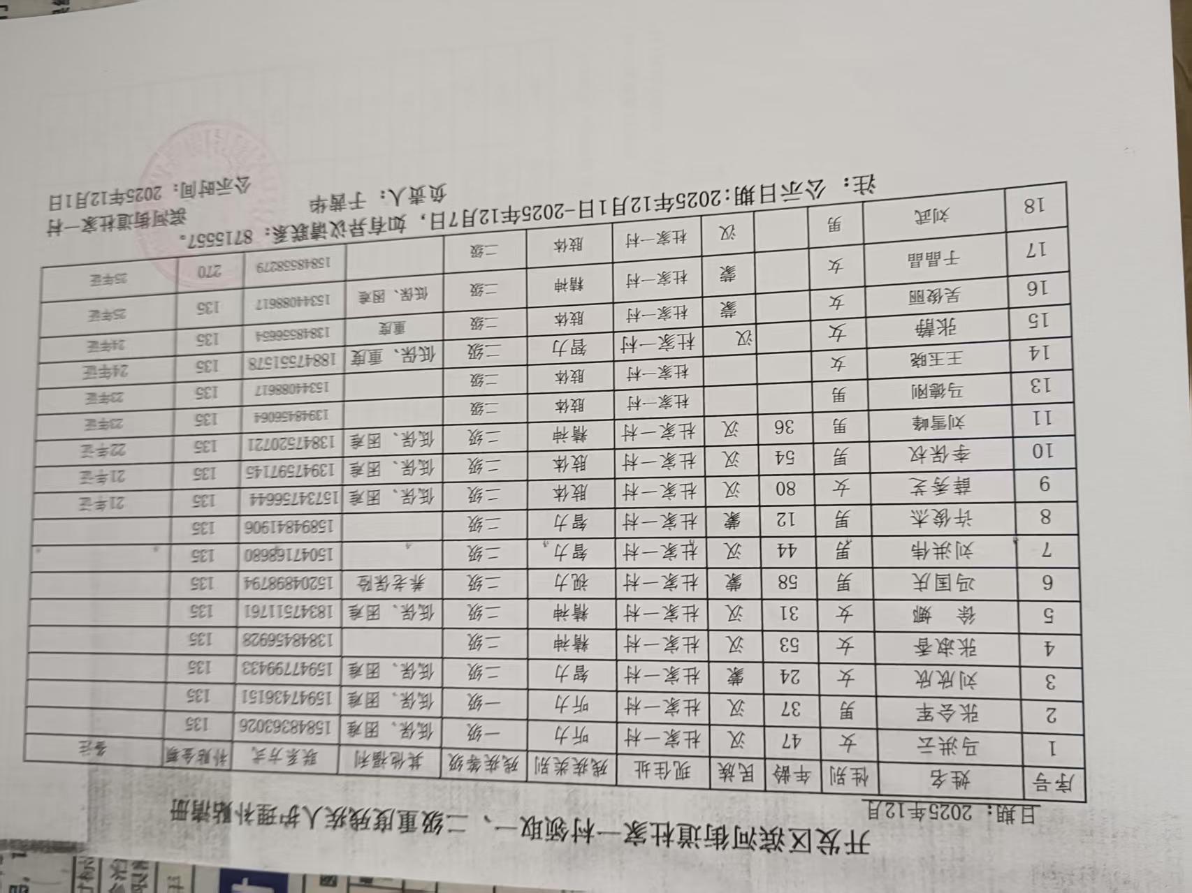 2025年12月一二级重度清册
